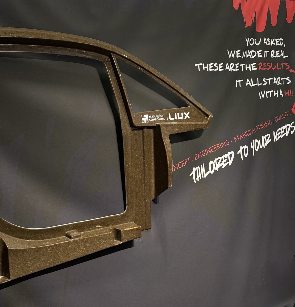 A flax panel developed in collaboration between Managing Composites and LIUX for the linen monocoque of the LIUX BIG urban car